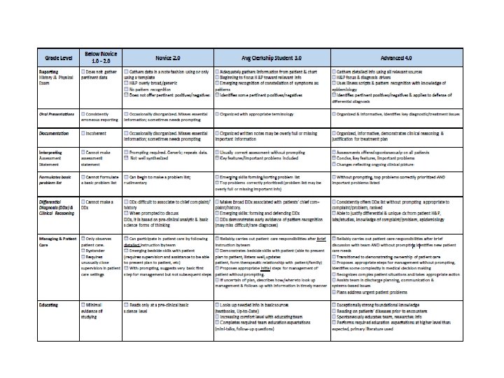 Objectives After this clerkship you should be able to: • Collect a hypothesis driven history and physical • Form an assessment statement • Organize a problem list • Formulate a differential diagnosis and defend • Present in an organized manner • Gain knowledge in common internal medicine problems • Communicate, educate and advocate effectively with patients and health care team • Display professional behavior • Demonstrate a commitment to lifelong learning, EBM • Record emotional reactions