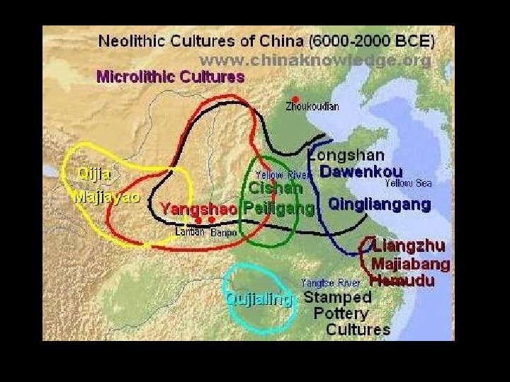 Neolithic Cultures of China Yellow River • • • 6500– 4500 BC: Peiligang, middle Yellow River 6300 -5500 BC: Houli, lower Yellow River 5900– 5300 BC: Dadiwan, mid-upper Yellow R. 5000– 3000 BC: Yangshao, middle. Yellow River 4500 -2400 BC: Dawenko, lower Yellow River Yangzi River • 6500– 5000 BC: Pengtoushan, middle Yangzi R. • 5000– 4000 BC: Hemudu, lower Yangzi River • 4500– 3300 BC: Daxi (3 Gorges) middle Yangzi