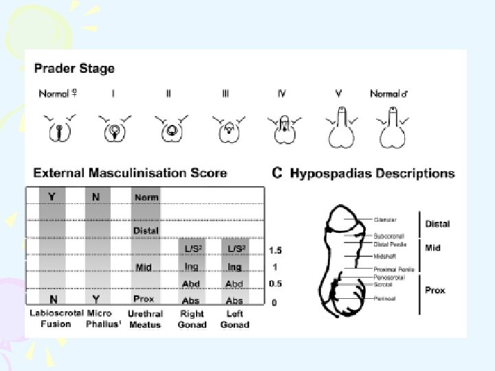 KAH-21 hidroksilaz eksikliği • Patofizyoloji: 3. Testosteron fazlalığı, erkek fetusta genellikle fenotipik etkilenmeye yol açmaz, kız fetusta ise dış genitalyanın virilizasyonuna neden olur. Kız infantlar normal uterus ve over yapısına sahip olmaların rağmen ambigus genitale ile doğar ve hatta dış genitalya tamamen erkek yönünde gelişmiş olabilir
