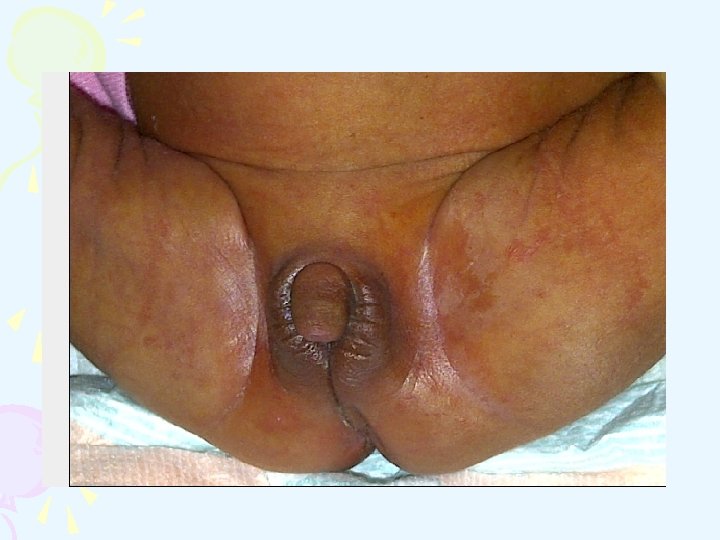 Doğum sonrası; • GD iyi, • Doğar doğmaz ağlamış. Solunum sıkıntısı ve ek bir sorun yaşanmamış. • FMde; şüpheli genitalya dışında patolojik bulguya rastlanmamış.