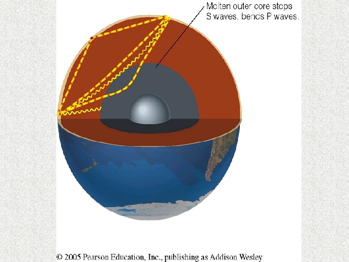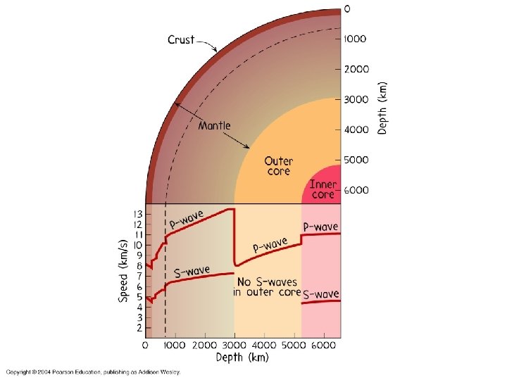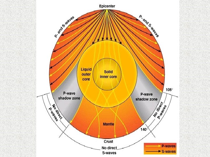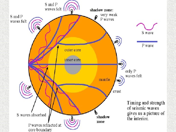 Sismik dalgaların yeriçi boyunca yayılımı P-dalgaları (Boyuna dalgalar) hem katı hemde sıvı cisimlerden geçebilir S-dalgaları (Enine dalgalar) sadece katı cisimlerden geçer