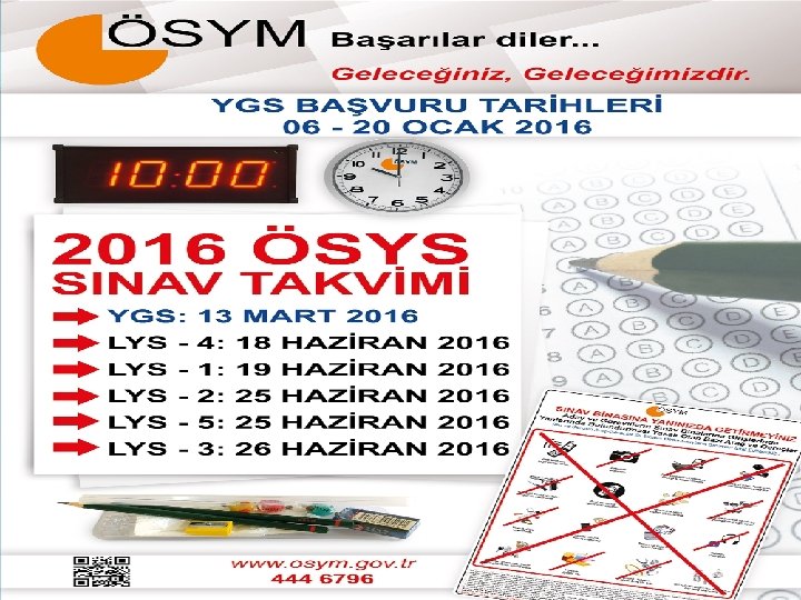 YGS • TEK KİTAPÇIKLI 160 SORULUK BİR SINAV • SORU BAŞI 1 DAKİKA SÜRE • KONULAR AĞIRLIKLI OLARAK 9. SINIF • SORULAR ANLAMA ve YORUMLAMAYA DÖNÜK, MUHAKEME GÜCÜNÜ ÖLÇEN BİR SINAV