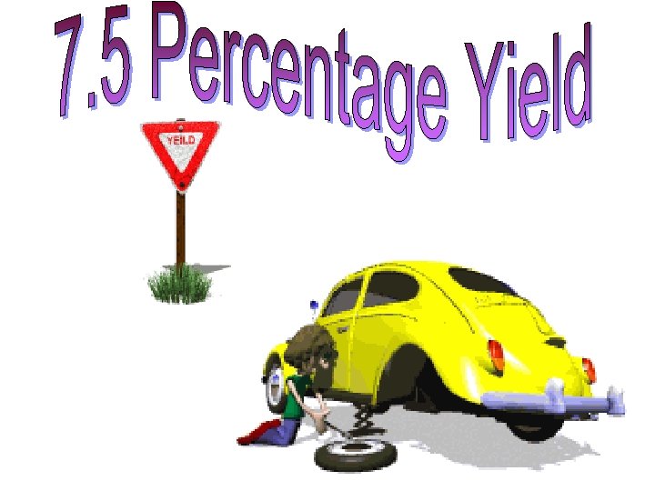 Procedure Step 1: write the balanced chemical equation Step 2: determine actual and theoretical yield. Actual is given, theoretical is calculated: Step 3: Calculate % yield