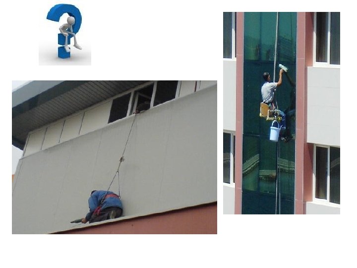 Yükseğe Çıkarken Bizi Taşıyan Ekipmanlar • Dış cephe asansörleri q Cephe asansörünü sadece eğitilmiş kimseler kullanabilir. q Çalışma yapılacak yüzeyde hava durumu (rüzgar hızı, fırtına, yağış vb. Şartlarda) yüksekte çalışma talimatına göre uygunluğunun kontrolü yapıldıktan sonra çalışma yapılır. q Sepet sorumlu camcı personeller tarafından sürekli temiz tutulmalıdır. q Dış cephe cam temizliği ‘’ağır ve tehlikeli işler ‘’kapsamında olduğu için cephe asansörüne 18 yaşından küçükler kullanamaz. q Dış cephe asansöründe yetkili kişiler dışında hiç kimse bakım, montaj yapamaz. Yetkili kişiler tarafından asansörün periyodik bakımı aksatılmadan yapılmalıdır. q 45 km / saat rüzgâr hızında dış cephe asansörüne çıkılmamalıdır. q İletişim için telsiz ve kulaklıklar mevcut ve sağlam olmalıdır.