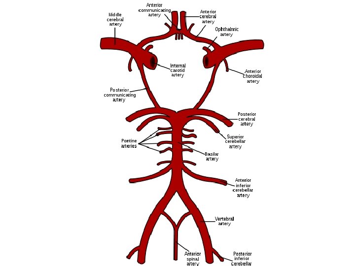Basilar Artery • TIAs in the proximal basilar distribution may produce vertigo • Occlusion of the superior cerebellar artery results in – Ipsilateral cerebellar ataxia, nausea and vomiting, dysarthria, contralateral loss of pain and temp sensation • Occusion of the anterior inferior cerebellar artery results in – Ipsilateral deafness, facial weakness, vertigo, nausea and vomiting, nystagmus, tinnitus and contralateral loss of pain and temperature sensation
