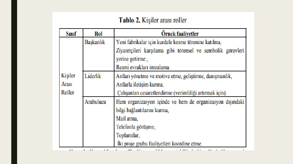 ■ Her yönetici, yönetim kademesinin gerektirdiği rollerinin bilincinde olmalı, rolünü çalışanlar ve organizasyon dışındaki insanlar gözüyle algılayabilmelidir.