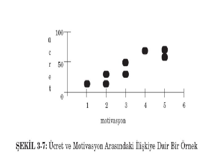 C. DAĞILIM DİYAGRAMI • Dağılım diyagramı iki değişken arasındaki basit doğrusal ilişkiyi analiz eder ve bu ilişkinin resmini ortaya koyar. X ve Y eksenlerinde değişkenler verildiğinde, elde edilen dağılımın şekli korelasyon hakkında bir fikir verir. • Örneğin işgörenlerin aldıkları ücretle motivasyon seviyeleri arasındaki korelasyon sağlıklı bir değerlendirme yapmak amacıyla dağılım diyagramı şeklinde gösterilebilir.
