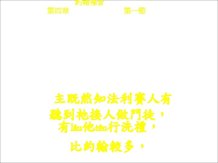約翰福音 Yok-hon Fuk-yîm 第四章 Thi Si Chông, 第十九節 Thi 19 chiet Fu-ngìn-kâ lâu Kì kóng : Chú â, ngài khon-chhut Ngì he siên-tî. 婦人家lâu祂講: 主â, 我看出祢係先知。