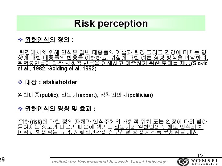 위해도 의사소통의 이론적 접근 Institute for Environmental Research, Yonsei University