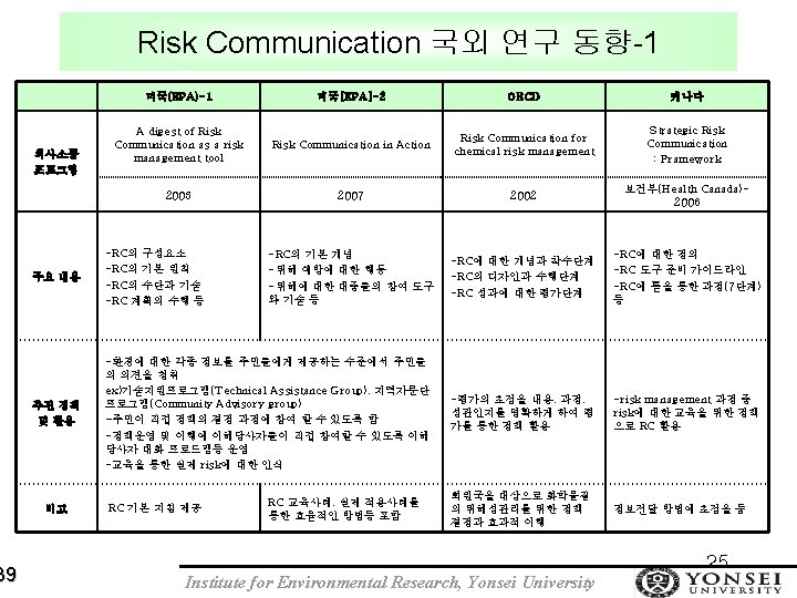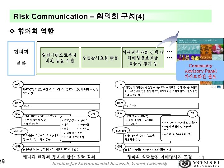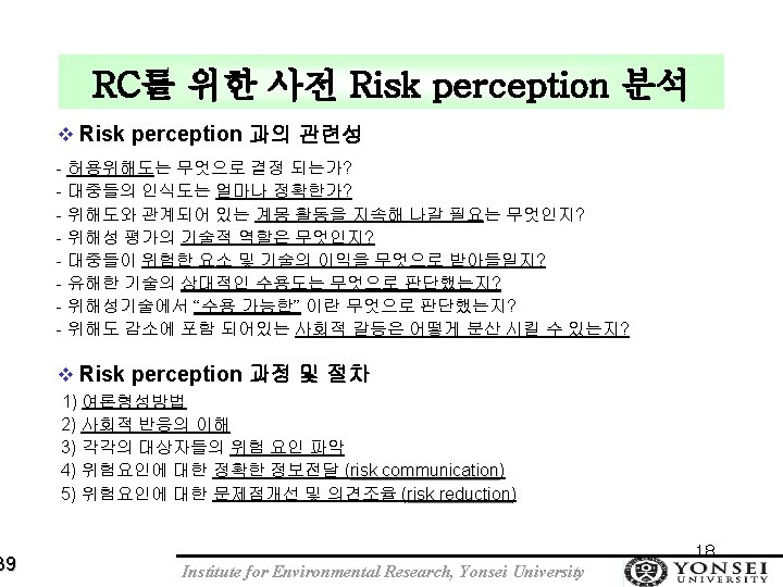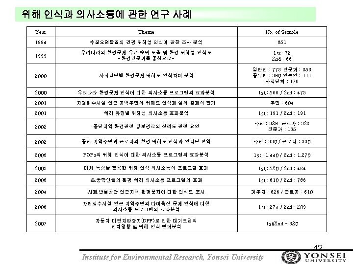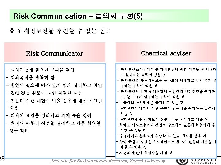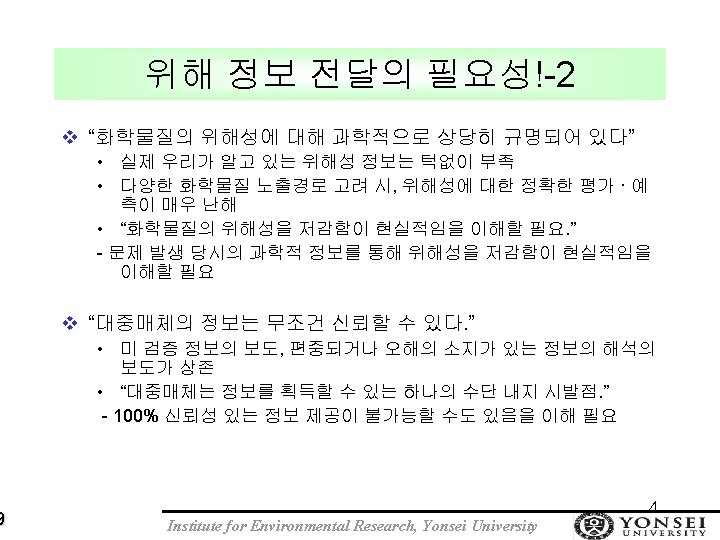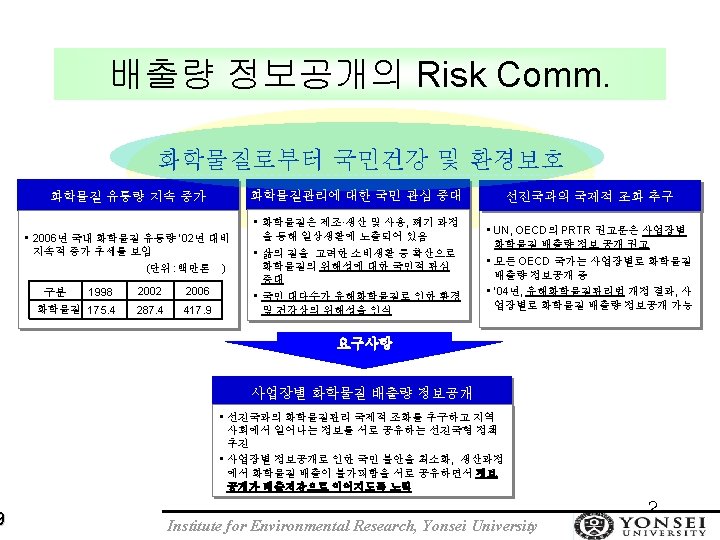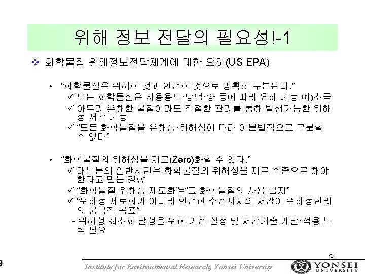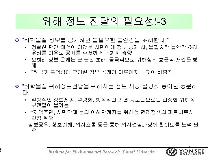 위해도 관리와 의사소통 Institute for Environmental Research, Yonsei University