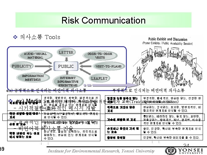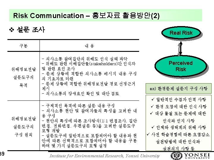 위해 의사소통 적용 Institute for Environmental Research, Yonsei University