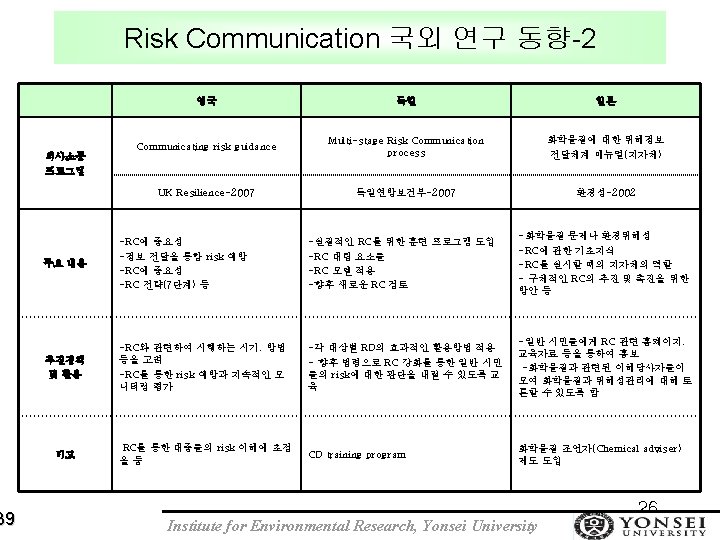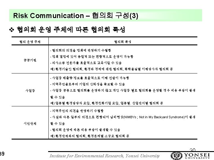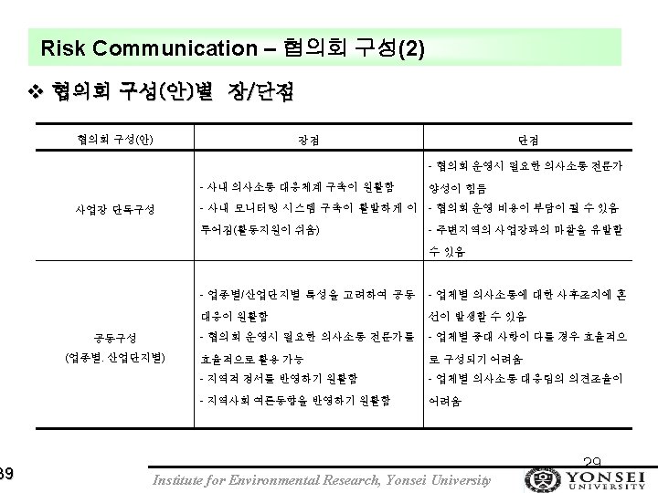39 사업장의 위해도 의사소통 전략 Institute for Environmental Research, Yonsei University 27