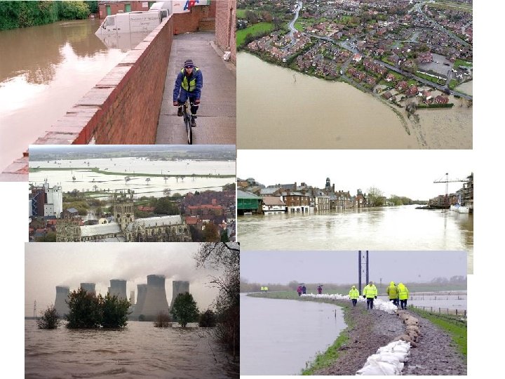 York floods November 2000 35 -40 mm rain in 24 hours 3000 people evacuated, Army called in to help Ouse 4. 8 m above normal levels 80, 000 sandbags used York race course flooded – no races Average insurance payout - £ 25, 000 per property £ 1. 3 m in costs for sandbags, fire, Army £ 10 m in lost income – 200, 000 fewer visitors