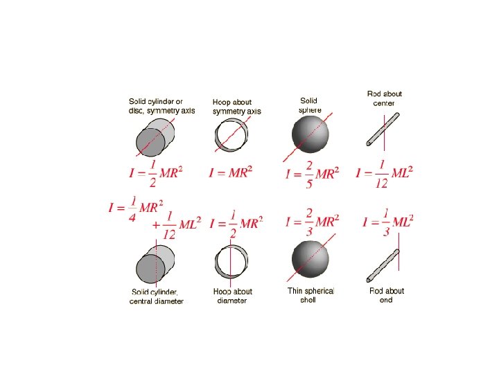 V = Rω F = ma = mΔv/ Δt F = m. RΔω/Δt FR = m. R 2Δω/Δt V F R torque MOMENT OF INERTIA angular acceleration θ V 0=0
