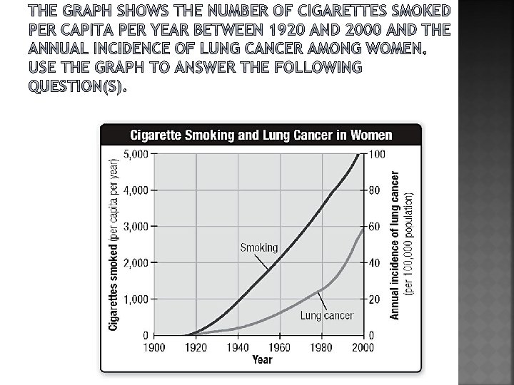 7. What was the relationship between the number of cigarettes smoked and the incidence of lung cancer? A. There was no relationship between cigarette smoking and lung cancer. B. As the number of cigarettes smoked decreased, the incidence of lung cancer increased. C. As the number of cigarettes smoked increased, the incidence of lung cancer increased. D. As the number of cigarettes smoked increased, the incidence of lung cancer decreased.