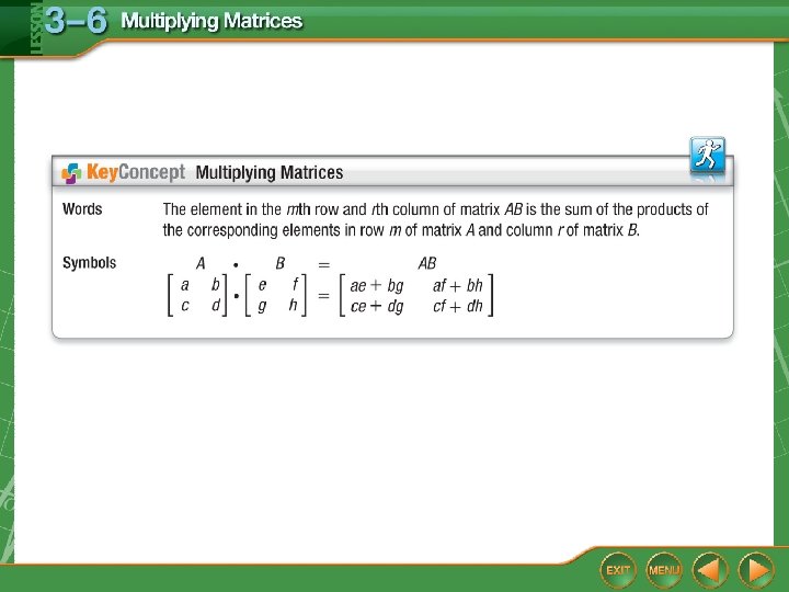 Multiply Square Matrices Step 5 Answer: Simplify the product matrix.