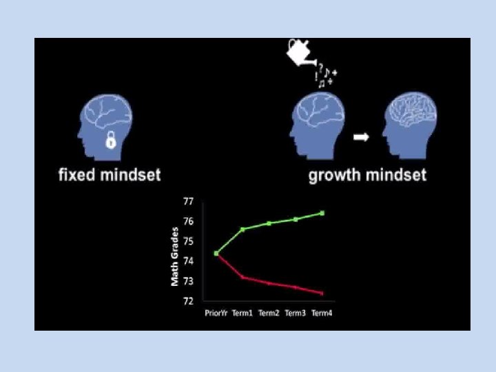 Pupils with a ‘Growth Mindset’ make the most progress Doctors Carol Dweck and Lisa Blackwell carried out two years of research with hundreds of year 7 pupils. At the start of the research pupils were surveyed to see what type of Mindset they had. Their Maths exam results were then tracked for two years. Results showed that pupils with a Growth Mindset improved their results over time. Those with a Fixed Mindset did not. The gap in their performance widened and widened over time.