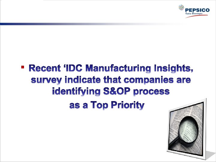 § Brown-Forman Corporation believes its approach to S&OP is a better way to align supply and demand with the company’s business requirements, build better internal communications, and plan activities to meet customers’ needs. § Exxon. Mobil Chemical leverages sales and operations planning to improve customer service while controlling costs. § Procter & Gamble credits own version of S&OP with creating a single set of sales and supply plans to optimize resources to support the company’s business objectives – assessing the financial implications of the plan as well as its impact on both supply and demand.