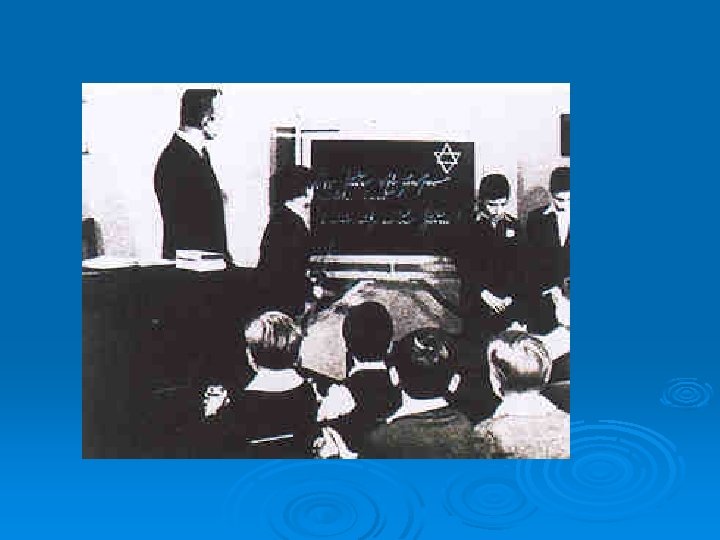 From 1935 on, after the Nuremburg Laws, Jewish school children were not allowed to attend schools. The Nazi government claimed that a German pupil sitting next to a Jew could become contaminated by the experience. Ø The sole purpose of this educational structure was to create a future generation that was blindly loyal to Hitler and the Nazis. Ø