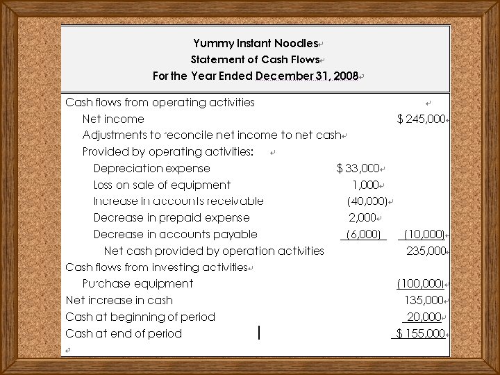 • Slogan: Yummy instant noodles, Yummy • • • Use organic components and new technology to reduce the percent of preservatives Concept: let customers feel safe. Main customers: women Main market: north Taiwan Key success factors: organic food