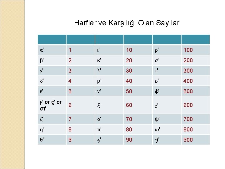 Kaynakça • Heath, Sir Thomas. A History of Greek Mathematics, Volume 1. New York: Dover Publications, 1981. • Cajori, Florian. A History of Mathematical Notations. Cosima Classics, 2007. • http: //en. wikipedia. org/wiki/Greek_numerals • http: //en. wikipedia. org/wiki/Myriad • http: //en. wikipedia. org/wiki/Attic_numerals