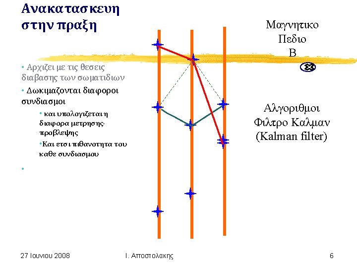 Propagating in a field Charged particles follow paths that approximate their curved trajectories in an electromagnetic field. z. It is possible to tailor ythe accuracy of the splitting of the curve into linear segments, ythe accuracy in intersecting each volume boundaries. z. These can be set now to different values for a single volume or for a hierarchy. 27 Ιουνιου 2008 Ι. Αποστολακης 37