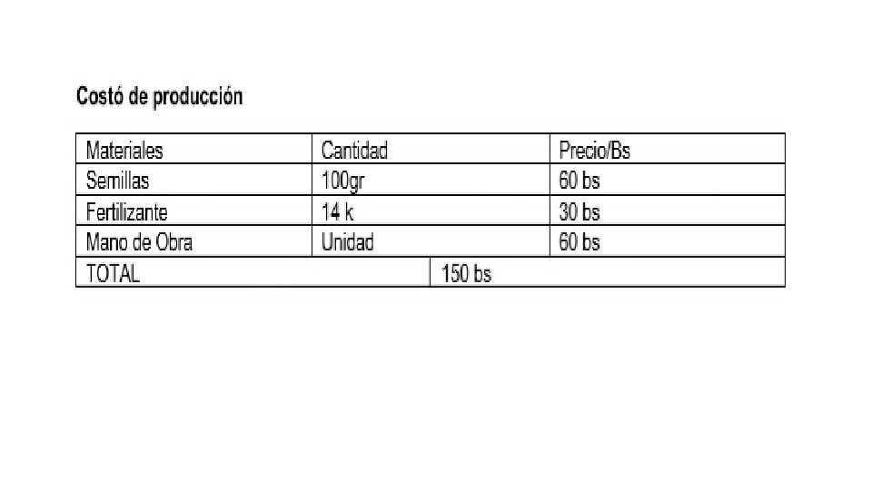 Preparación del suelo • Prefiere los suelos arcillo-calizos, aireados y frescos, ricos en materia orgánica bien descompuesta y , con ph comprendido de 7. • Se realiza la limpieza de todas las malezas del terreno • luego remover la tierra para que este uniforme • regar el suelo antes de sembrar para que pueda germinar mejor