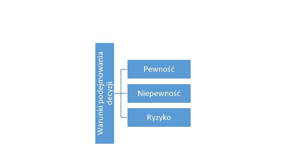 Warunki podejmowania decyzji Pewność Niepewność Ryzyko
