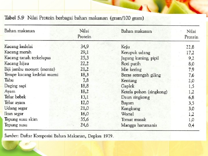 Klasifikasi Berdasar sumber • Protein hewani • Protein nabati Berdasar fungsi fisiologik 1. Protein sempurna (as amino ess lengkap) - Protein hewani - Sanggup mendukung pertumb badan & pemeliharaan jar. - Penting untuk bayi, balita, bumil 2. Protein setengah sempurna (as amino ess tdk lengkap) protein nabati memelihara jar tapi tidak mendukung pertum badan dibutuhkan dewasa