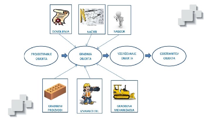 Gradbeni proizvodi • Regulirani z Uredbo 305/2011 (CPR) • S svojimi lastnostmi vplivajo na osnovne zahteve za objekte • Kako pomemben je ta vpliv s Sklepom določi Komisija EU (Commission Decision) • Čim večji je ta vpliv, večja vloga neodvisnega organa je predvidena
