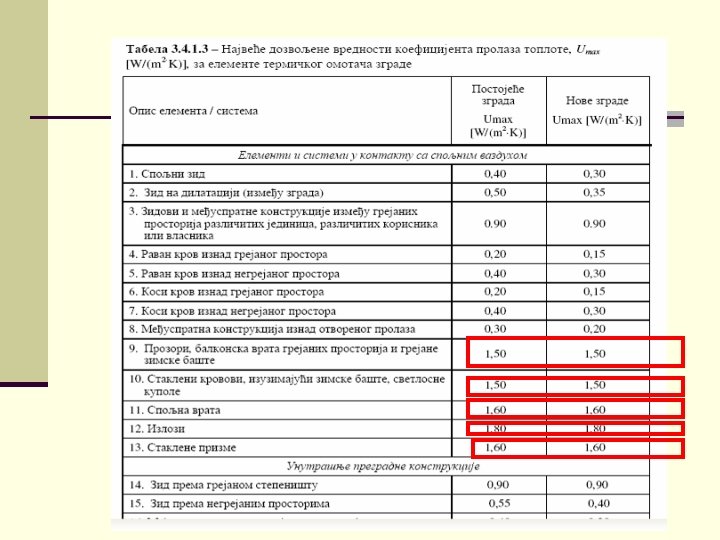 PROPISI O ENERGETSKOJ EFIKASNOSTI NAMEĆU SLEDEĆE VREDNOSTI Umax