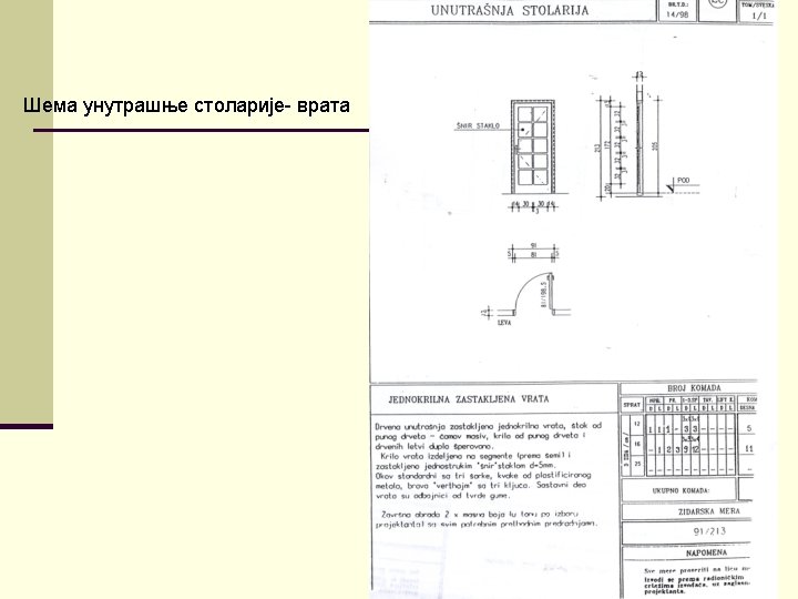 PODELA PREMA POLOŽAJU U OKVIRU SKLOPA OBJEKATA n UNUTRAŠNJA STOLARIJA n UNUTRAŠNJA VRATA n UNUTRAŠNJE PREGRADE n PLAKARI n SPOLJAŠNJA STOLARIJA n PROZORI n BALKONSKA VRATA n ULAZNA VRATA