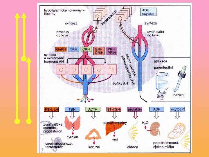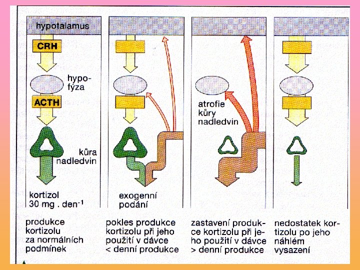 HORMONY ADENOHYPOFÝZY Růstový hormon (GH, somatotropin) • u dětí gigantismus • u dospělých akromegalie • nádory hypofýzy Adrenokortikotropní hormon (ACTH) • hyperfunkce, hypertrofie a hyperplasie nadledvin, Cushingův sy • poruchy regulace v ose hypothalamus – hypofýza - nadledviny