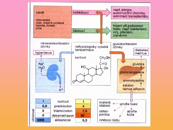 GLUKOKORTIKOIDY • Imunosuprese - častější a těžší infekce, pomalejší a horší hojení ran • insuficience kůry nadledvin syntetizovat hormony • Cushingův sy - podkožní hematomy, svalová slabost, centrální typ obezity, hirsutismus, mentální poruchy, osteopenie, osteoporóza, patologické zlomeniny • U dětí inhibice růstu • intrakraniálního tlaku, srážlivosti krve, teploty • poruchy menstruace