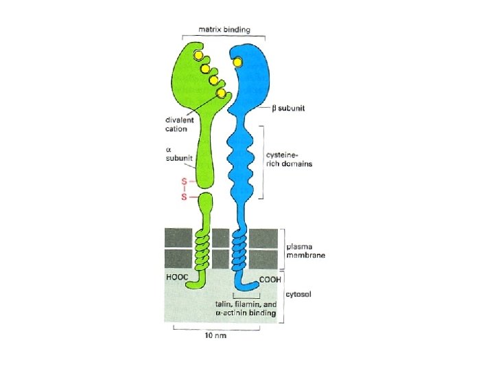 Integrini: heterodimeri (sesalci: 22 različnih vrst: 17 alfa + 8 beta). Na isti celici je več različnih z različnimi specifičnostmi. Tarčne molekule vežejo sorazmerno šibko.