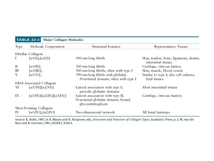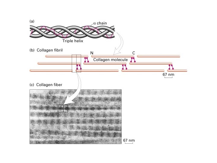 Kolageni • • • Najpogostejši proteini v živalskem svetu Obstaja vsaj 16 vrst kolagenov >80% vseh kolagenov je tipov I, II in III Večina jih oblikuje fibrile Osnovni strukturni element je trojna vijačnica