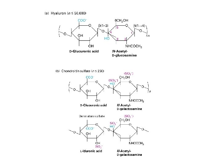 Zgradba proteoglikanov: delež aminokislin je majhen, prevladujejo linearni polimeri disaharidov glikozaminoglikanov.