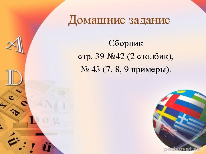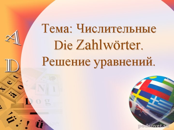 Образование числительных • От 13 до 19 : Neun + zehn ist neunzehn 9 + 10 19 Vier + zehn ist vierzehn 4 + 10 14 Sechs + zehn ist sechzehn 6 + 10 16 Sieben + zehn ist siebzehn 7 + 10 17 • Десятки : / единица + zig 4 + / 40 Vier+ zig ist vierzig 9 + / 90 Neun + zig ist neunzig 3 + / 30 Drei + βig ist dreiβig