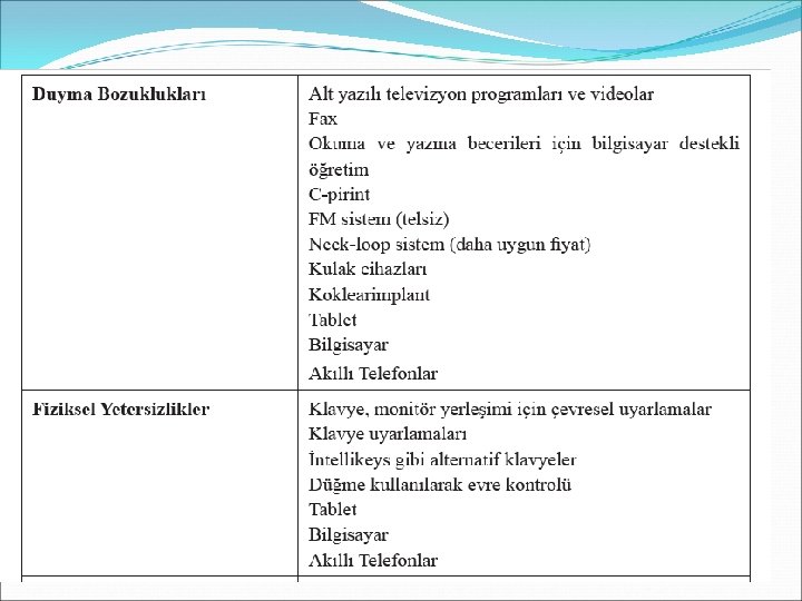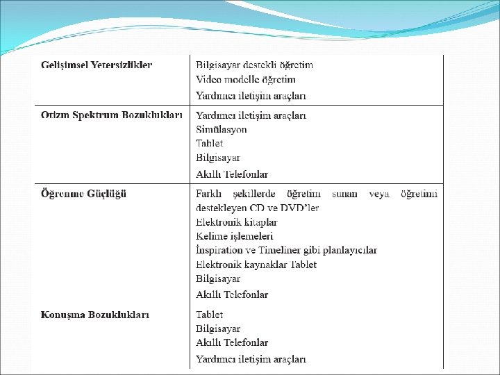 Kullanılan Teknolojik Araçlar �Teknolojik destek denildiğinde hem yardımcı teknolojiden hem de öğretim teknolojilerinden söz etmek gerekmektedir.