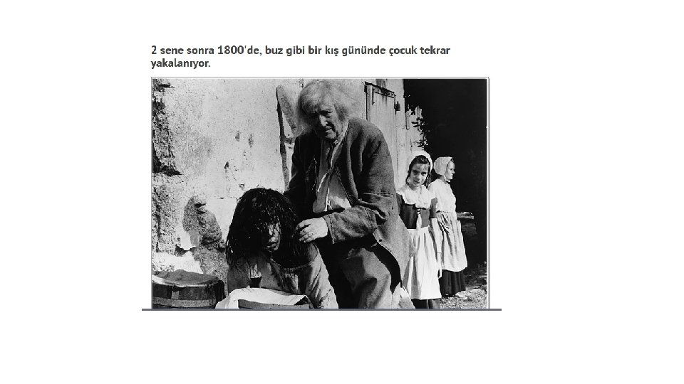 • Victor’un gizemli hikayesi 1800’de başlar. Fransa’daki Aveyron, bölgesinde 12 yaşındaki bir çocuk ormanda dolaşırken bulunmuştur. Çocuk çıplaktır, konuşamaz, üzerindeki yaralar çok küçük yaştan beri vahşi bir hayat yaşadığını göstermektedir. Yıkanmayı ve dokunulmayı şiddetle reddeder, insanlarla kontak kurmaz ve sık şiddet içeren tepkiler verir. Yıllarca yalnız yaşamak selektif duyma duyusunu inanılmaz ölçüde geliştirmiştir.