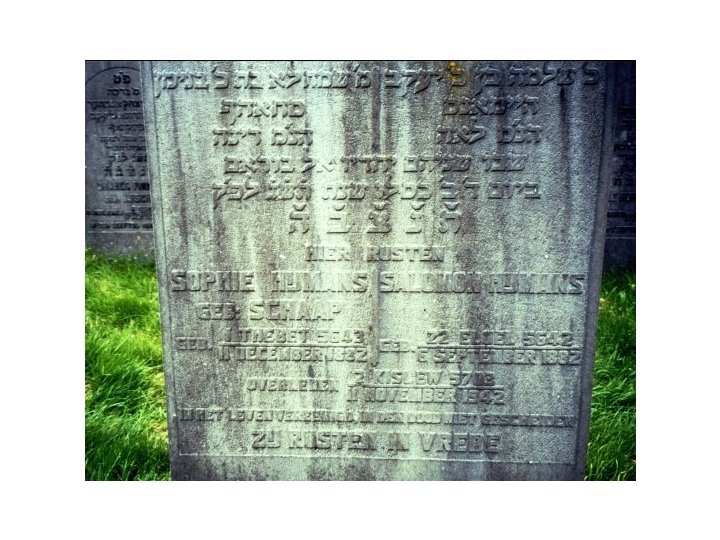 Ik (Wout Ultee) geloofde wel wat Herzberg schreef maar ben toch op enkele Joodse kerkhoven gaan kijken. Er waren nog vollere grafstenen dan Herzberg aangaf. In Nijmegen, dat begin 1941, toen Joden zich bij de burgemeester moesten aanmelden, 522 joodse inwoners telde, bevindt de Joodse begraafplaats zich tussen de Postweg en de Kwakkenbergweg. Ik kwam binnen na een afspraak met de beheerder. Ik vond geen dubbele grafstenen. Ik trof wel dubbele grafstenen aan op de Joodse begraafplaats te Muiderberg, net buiten Amsterdam en op de Joodse begraafplaats in Wassenaar, bij Den Haag. Op de eerste dia van deze presentatie staat het bord dat men rechts ziet bij het betreden van de Joodse begraafplaats te Muiderberg