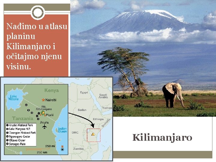 Nađimo u atlasu planinu Kilimanjaro i očitajmo njenu visinu. Kilimanjaro