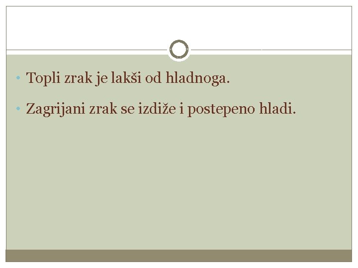 • Topli zrak je lakši od hladnoga. • Zagrijani zrak se izdiže i postepeno hladi.