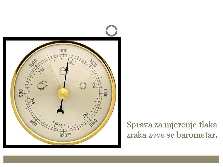 Sprava za mjerenje tlaka zraka zove se barometar.