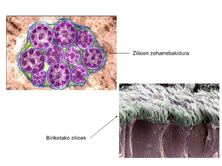 ZER DIRA? • Ile meheen itxurako mintz plasmatikoz inguratutako luzapenak. • Mugimedurako balio duten mikrotubuluen taldeak • Zelula askeetan lokomozio-funtzioa Finkoetan zelularen kanpoko fluidoa mugitu.