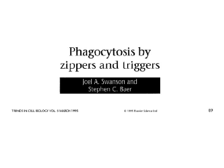 Zipper Mechanism • Ingestion occurs by sequential engagement of the phagocyte membrane with the particle surface. Pseudopod advance proceeds no further than the receptor-ligand interaction permits.