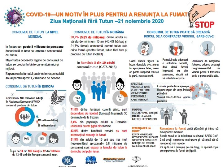 Ziua naţională fără tutun Slogan COVID-19 UN MOTIV ÎN PLUS PENTRU A RENUNŢA LA FUMAT!!