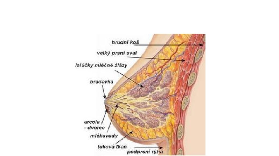 Fyziologie laktace Dráždění nervových zakončení v bradavce a dvorci, efektivním sáním dítěte Stimulace hypofýzy Zadní lalok hypofýzy → Oxytocin Přední lalok hypofýzy → Prolaktin Myoepitelilání buňky → uvolnění mléka Alveolární buňky → tvorba mléka Nalitá prsa Hypotalamus →prolaktin inhibitující hormon (PIH) Inhibice laktace