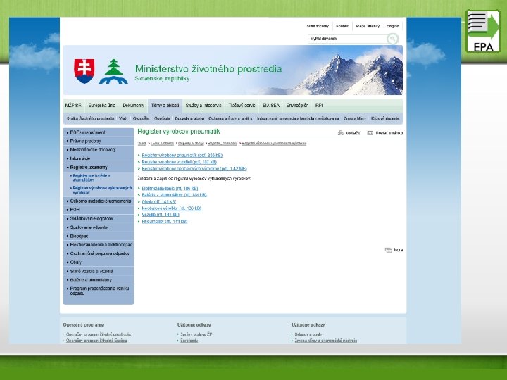 § 27 - Základné ustanovenia Ods. 4 – Výrobca vyhradeného výrobku je povinný a) b) c) d) e) f) g) h) i) j) k) zaregistrovať sa v Registri výrobcov vyhradeného výrobku a oznamovať zmeny registrovaných údajov, ustanoviť splnomocneného zástupcu v súlade s odsekmi 18 až 20, ak je výrobcom vyhradeného výrobku uvedeným v odseku 18, zabezpečiť materiálové zloženie vyhradeného výrobku, jeho konštrukciu a jeho označenie v súlade s osobitným oddielom tejto časti zákona, pokiaľ mu táto povinnosť z nej vyplýva, plniť informačnú povinnosť vo vzťahu k verejnosti a k spracovateľovi vyhradeného prúdu odpadu v súlade s osobitným oddielom tejto časti zákona, zabezpečiť plnenie cieľov ustanovených v prílohe č. 3, zabezpečiť nakladanie s vyhradeným prúdom odpadu v rozsahu a spôsobom uvedenom v osobitnom oddiele tejto časti zákona, zabezpečiť zhodnotenie a recykláciu vyhradeného prúdu odpadu najmenej vo výške záväzných cieľov a limitov zhodnocovania a recyklácie pre vyhradený prúd odpadu, ustanovených v prílohe č. 3, viesť a uchovávať evidenciu a ohlasovať ministerstvu údaje z nej v ustanovenom rozsahu a uchovávať ohlasované údaje, plniť informačnú povinnosť vo vzťahu ku konečným používateľom vyhradeného výrobku v súlade s osobitným oddielom tejto časti zákona a ustanoveným spôsobom [§ 105 ods. 3 písm. i)], vypočítať si svoj zberový podiel a trhový podiel v súlade s osobitným oddielom tejto časti zákona, na základe údajov, ktoré zverejní ministerstvo na svojom webovom sídle do 30. apríla, zabezpečiť odobratie celého množstva oddelene vyzbieranej zložky komunálneho odpadu patriacej do vyhradeného prúdu odpadu z obce, v ktorej zodpovedá za vyhradený prúd odpadu; ustanovenia písmen e) a g) týmto nie sú dotknuté.