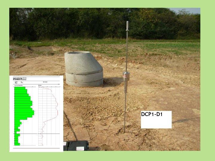 DCP-použití • Kontrola míry zhutnění (QC a QA ) • Rychlé stanovení únosnosti podkladních vrstev a podloží pozemních komunikací, diagnostika • pass fail – for granular base layer QA (15 mm/blow horních 75 mm, 10 mm/blow 75 -150, 5 mm/blow pod 150 mm • Snadná obsluha – dle EN 1 technik, dle ASTM 1 technik (DCP s automat. záznamem), 2 (bez automat. )